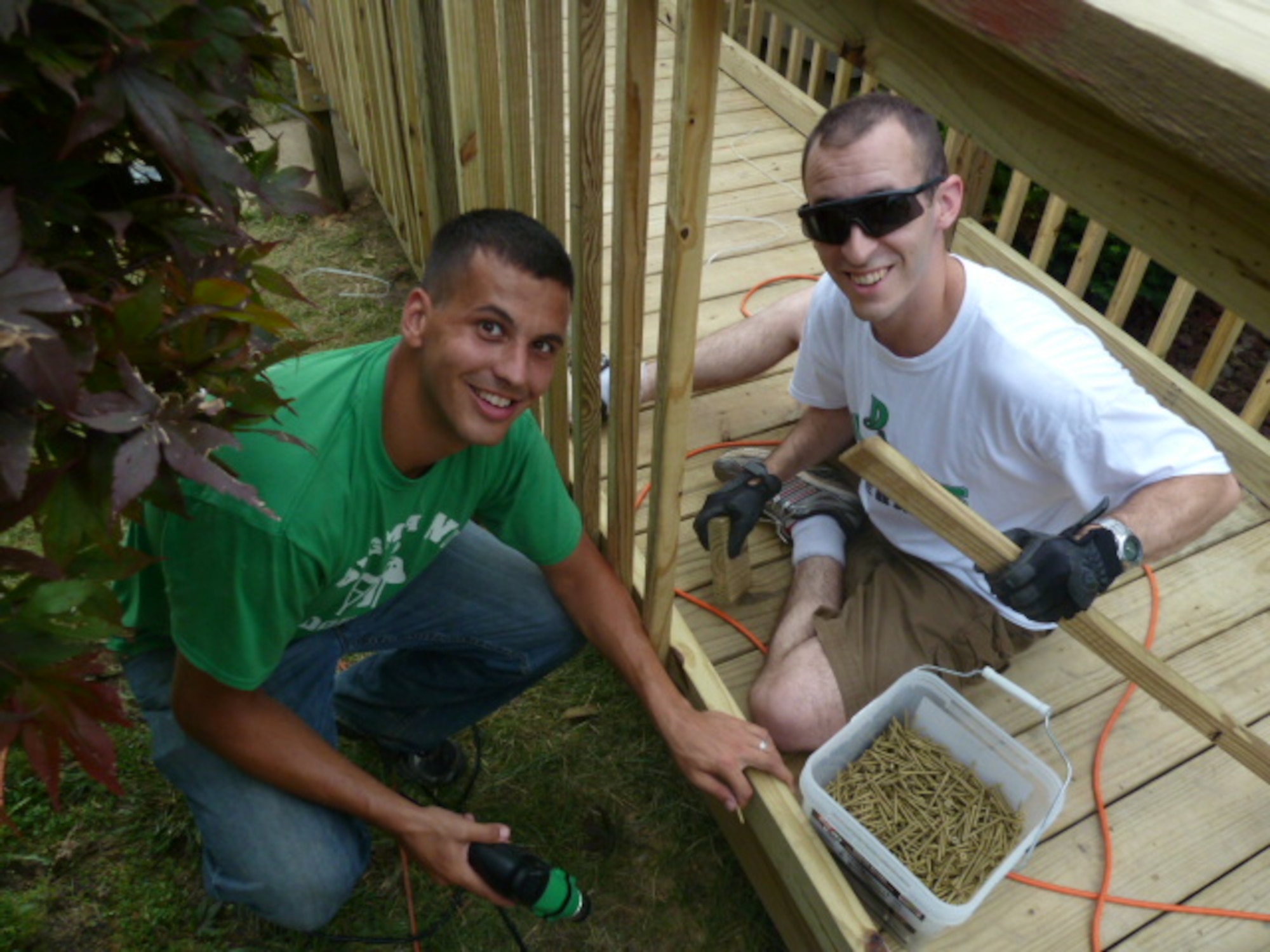 AFIT students use talents to serve community Published July 8, 2011 By Daryl Mayer 88th Air Base Wing Public Affairs WRIGHT-PATTERSON AFB, Ohio -- A group of Engineering Management students from the Air Force Institute of Technology put their education to use on June 25 helping an elderly Dayton resident in need. First Lt. Zach Schiff designed the wheelchair ramp and collaborated with fellow project leader, Capt. Aaron Zorn, and other AFIT students from the Department of Systems and Engineering Management to build it at the elderly person's home. "In an effort to join project management skills gleaned from work and deployment experiences with a desire to give back to the community, students designed and built what will hopefully be the first of many ramps in the area," said Captain Zorn. This project was a partnership between students in the Engineering Management program, Rebuilding Together, and the Dayton Service Engineering Collaborative. While the agencies provided the funds and supplies, the AFIT team provided the brainpower and brawn. "We hope we've started a tradition that will last for years," Lieutenant Schiff said. "This is a great way to show 'Service before Self.'"