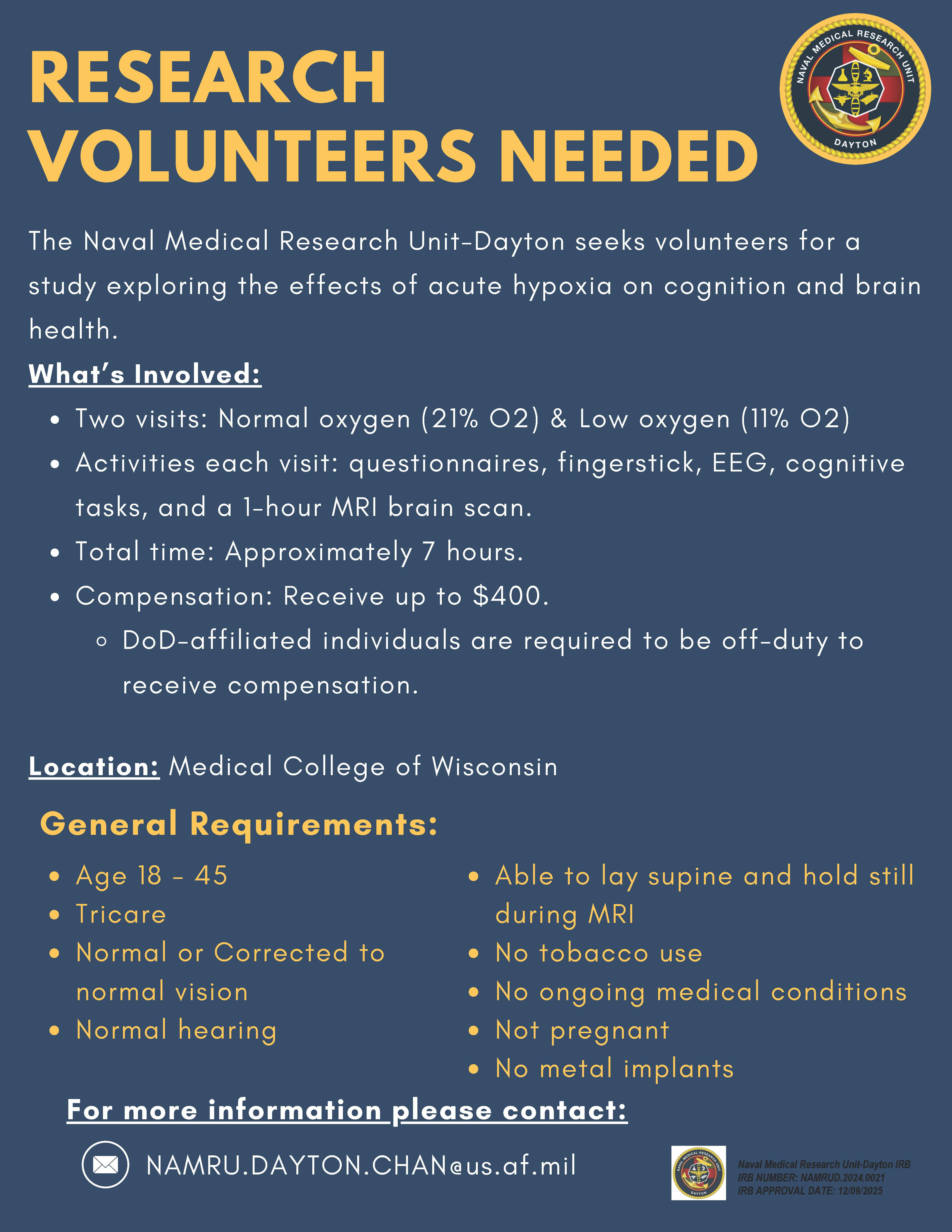 Contact: NAMRU.DAYTON.CHAN@us.af.mil