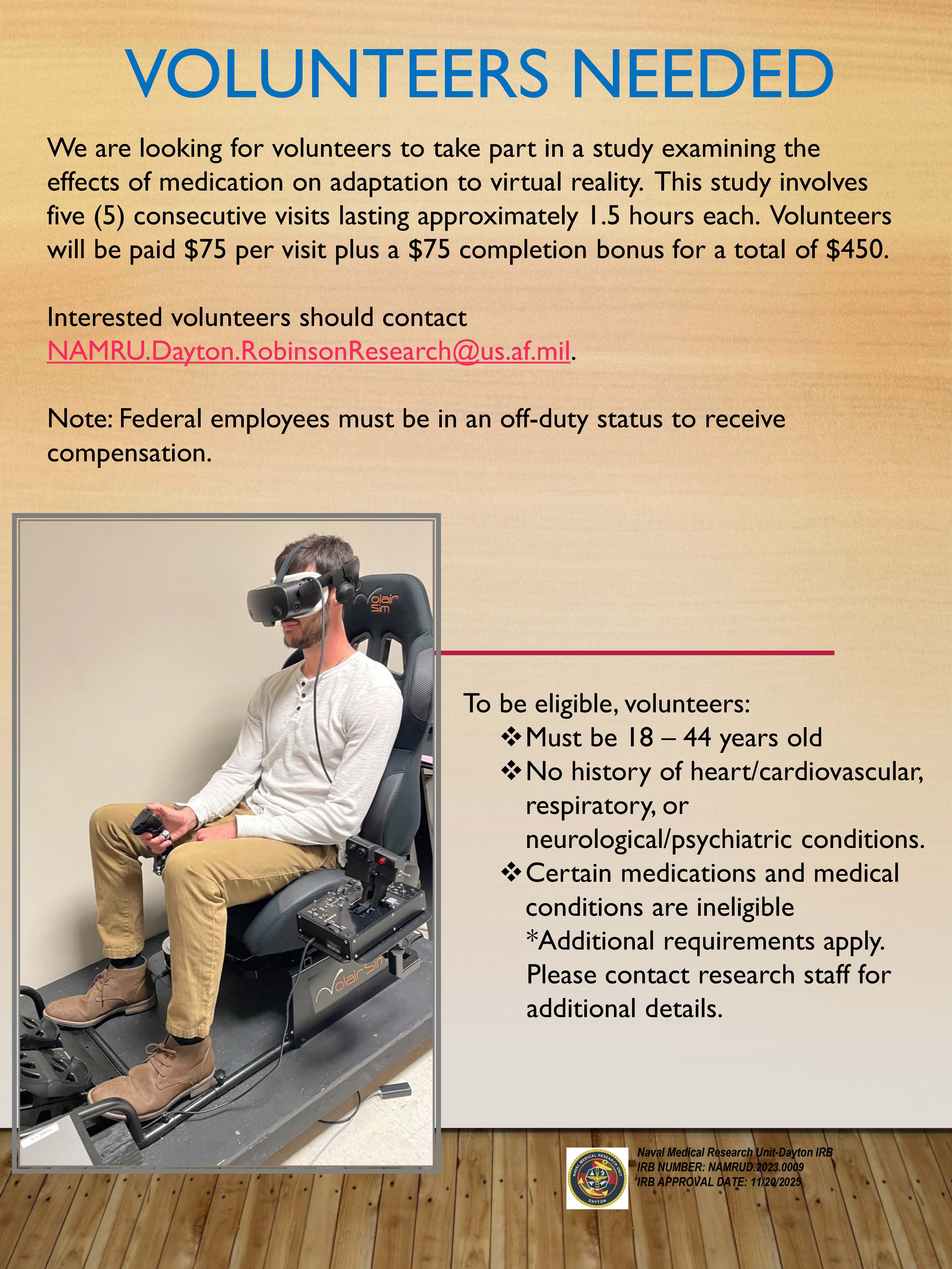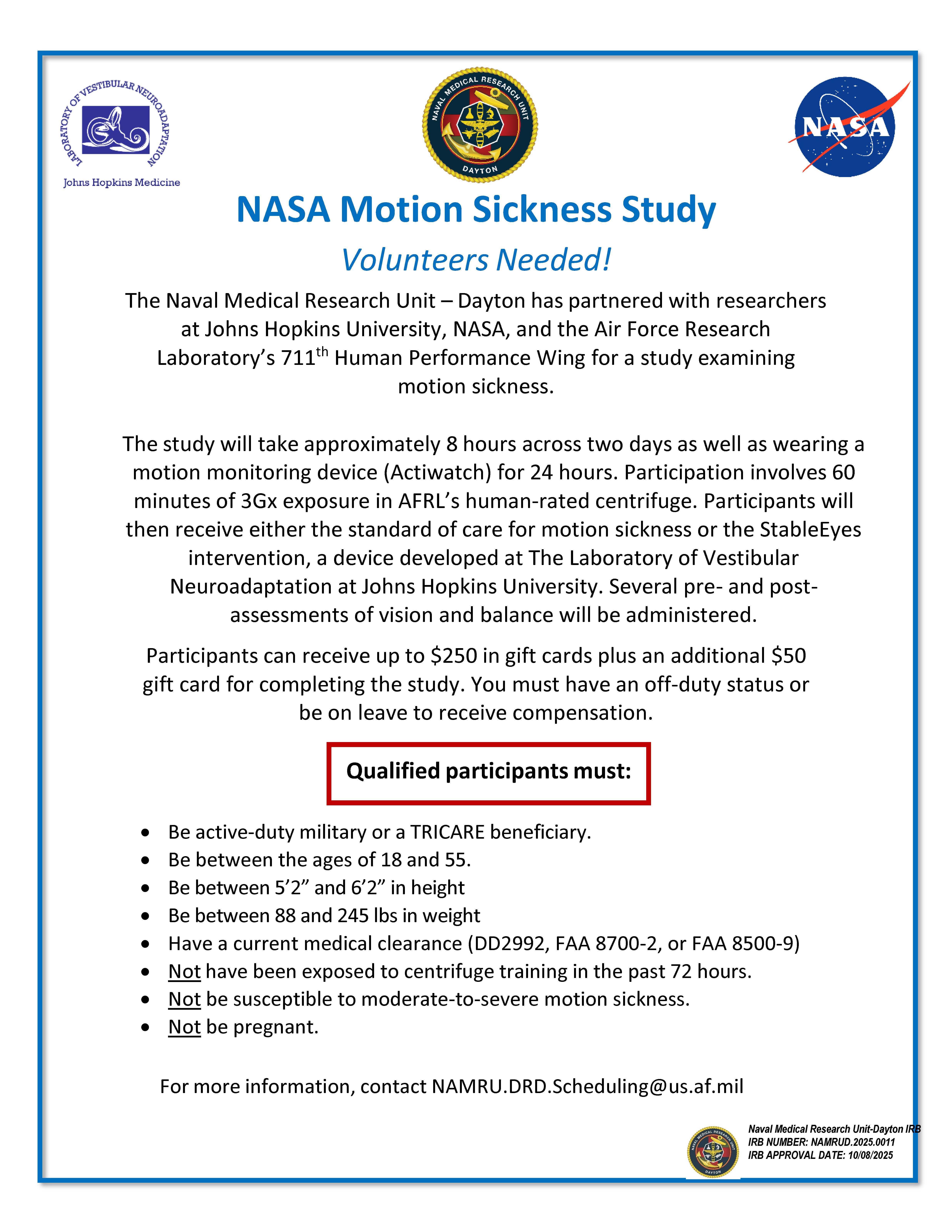 * Select studies require participants to be on Tricare health insurance. TRICARE is a health program for military members (active duty, reserve, guard, retirees, etc.) and their family members.