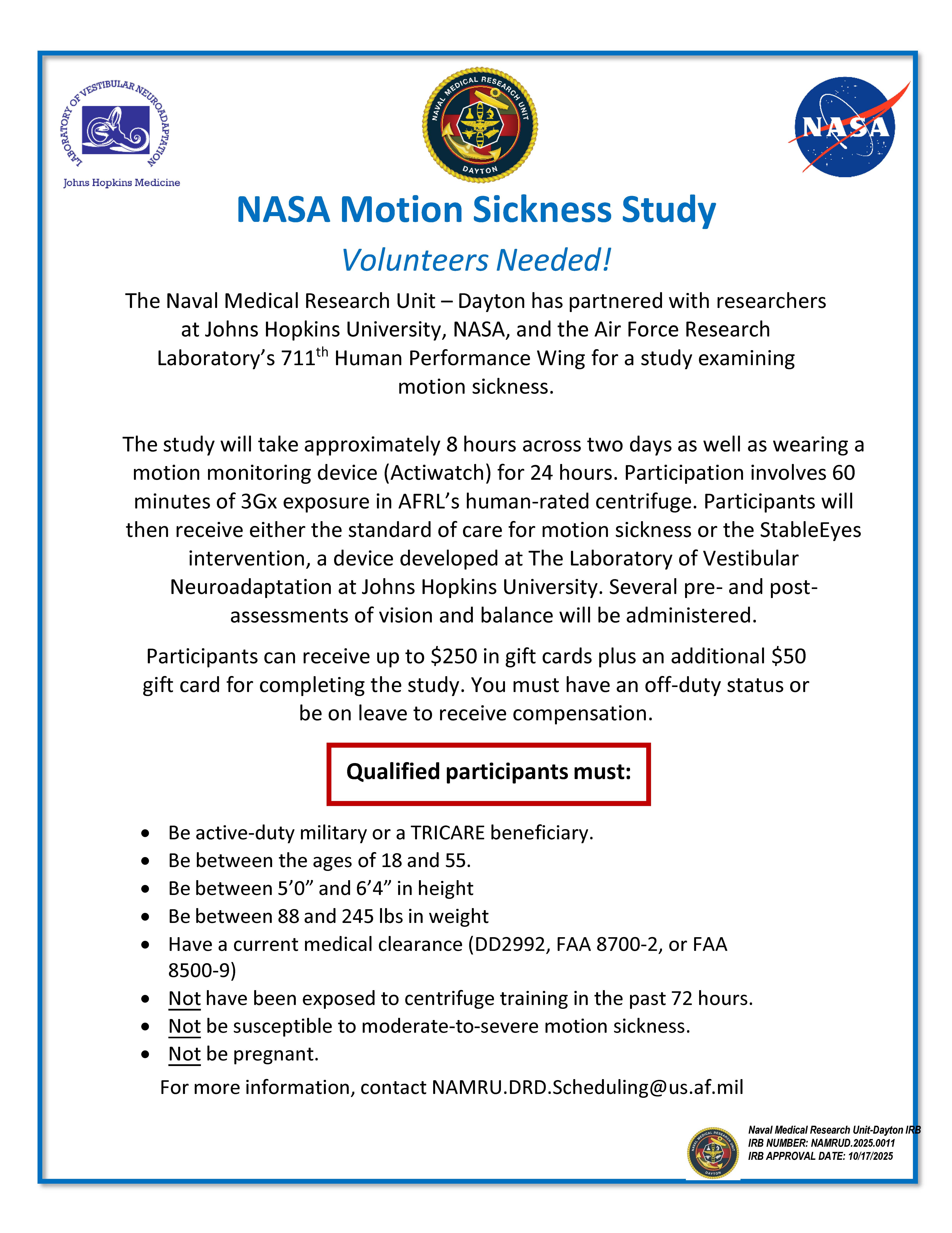 Contact: NAMRU.DAYTON.CHAN@us.af.mil